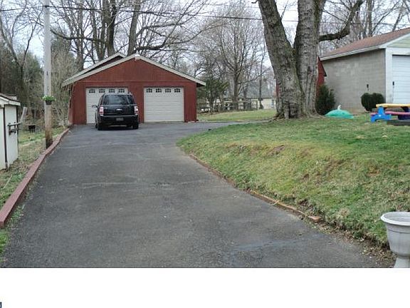 Perfect home for car enthusiast, 4 car detached garage with additional storage, newer garage doors and newer 3 dimensional roof on home and garage. Lovely home with beautiful newer kitchen, all newer appliances and granite counter tops with glass sliding doors leading to back patio, cook your burgers on the patio. Home has 2 full baths, formal living room, dining room and one bedroom and full bath on first level, 2nd level has 2 large bdrms and full bath, hardwood floors thru out. Full basement semi-finished. Enjoy rocking on the front porch, central air conditioning, cul-de-sac street. Route one, PA turnpike, Neshaminy Mall and train station are minutes away.
