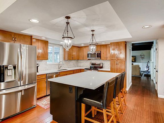 4 Bed/3 Bath Home in the desirable Holly Hills neighborhood. Cherry Creek School District. Remodeled with open floorplan. New stainless steel kitchen appliances, white quartz countertops, large island, new hardwood floors downstairs, new carpet, newly painted, updated light fixtures, doors and hardware. Family Room with wood fireplace & built-ins with access to covered Patio & private fenced Backyard with mature landscaping. Large Master Bedroom offers a beautiful remodeled private Bath & walk-in closet. Also on upper level are three additional Bedrooms (one with walk-in closet) & remodeled Full Bath. Newer furnace, water heater, windows, roof & sewer line. Centrally located with easy access to I-25, liGhtrail, DTC, Cherry Creek & Downtown. Close to many parks including Bible Park.
