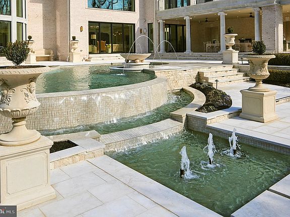 Set on nearly four acres along prestigious Georgetown Pike, this French-inspired estate offers 22,000 square feet of refined living across four levels with 10 ensuite bedrooms. A sweeping drive leads to wrought iron gates and a grand motor court, setting the stage for interiors designed with uncompromising craftsmanship. The marble foyer opens to expansive living and entertaining spaces, including a paneled library, elegant dining room, multiple kitchens, and a great room with panoramic garden views. The 3,300-square-foot primary suite features dual fireplaces, a private terrace, and an extraordinary two-story dressing closet. Amenities extend to every level: a screening room, full spa with sauna and steam, massage and glam rooms, a fitness center, and a lounge with wet bar and direct garden access. Outdoors, resort-style grounds include a pool with waterfalls, a retractable 200-inch screen, and a covered al fresco dining pavilion with a built-in grilling kitchen. With smart-home technology, five garage bays, and secure parking for 30, this estate represents unmatched luxury just minutes from Washington, DC.