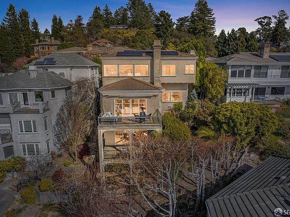 Perched on a stunning outlook in the coveted Glen Highlands area of Montclair, 6431 Gwin Road offers a rare combination of dramatic Bay views, elegant architecture, and spacious living. Built new in 1998, this 3BD/2.5BA multi-level home is designed to maximize its panoramic 3-bridge outlook, with floor-to-ceiling windows, multiple decks, and seamless indoor-outdoor flow. A bright grand foyer opens to a FLR w/soaring ceilings, a fireplace, and an adjacent dining area showcasing the SF skyline. The main level also features a great room with a fireplace, a large view deck, and a chef's kitchen with a peninsula, custom cabinetry, and high-end appliances. Upstairs, the expansive primary suite is a true retreat, offering breathtaking Golden Gate views, a sitting area, dual-sided fireplace, spa-like bath, soaking tub, and a walk-in closet. The lower level boasts a large office, media room or gym with a covered balcony, two additional ample BDs, a full BA w/dual vanity, and a dedicated laundry room. Fresh paint, hardwood floors, a new HVAC system, and leased solar run throughout. Landscaped patios and yards, a spacious two-car garage, and private cul-de-sac location complete this rare offering, just minutes from Montclair Village, Rockridge, Berkeley, parks, schools, and freeway access.