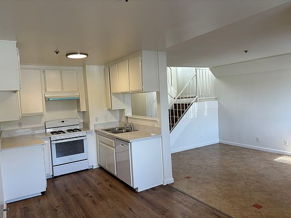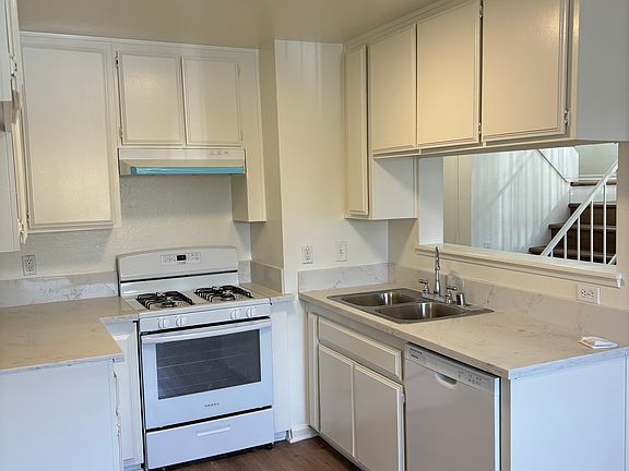 Townhome style 3 bedroom 2 bath unit with 1 direct access garage + 1 assigned parking spot. Unit features central a/c and heat, dishwasher, washer dryer hookups, and front fenced in yard area. Flooring features wood vinyl planks, tile, and new carpet in bedrooms only. Landlord pays water, sewer, and trash. Some pets ok please submit. Applications through rent spree $39.99 per adult.