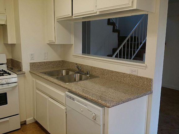 Townhome style 3bdrm 2 bath with 1 car direct garage + 1 assigned parking spot, dishwasher, laundry hookups in garage, and central a/c and heat. Unit has been upgraded with granite countertops in kitchen + bathrooms. New carpet, and wood vinyl flooring. Landlord pays water, sewer, and trash.