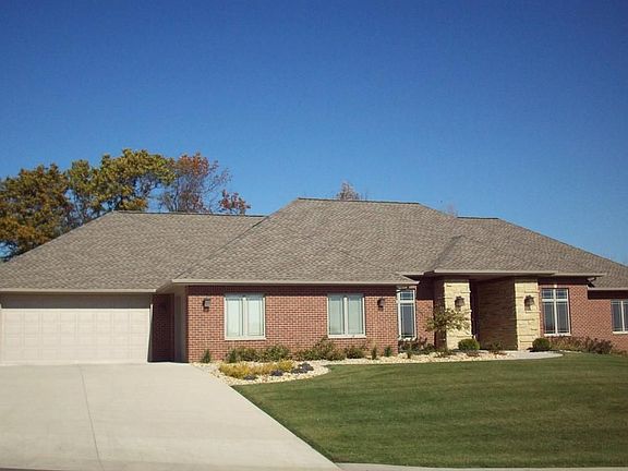 Large all brick ranch. Features include walk-out lower level, three seasons room, big beautiful patio. Large professionally landscaped lot on The Meadows Golf Course, beautiful views in all seasons. Amazing kitchen with high end appliances, granite counter top's. Hardwood flooring and custom cabinetry. 10' ceilings. Master suite with spa bath and walk in closet. Lower level has family room with custom bar and office/4th bedroom. Three car garage space on main level and room for 6 cars in the lower level. Brokered And Advertised By: American Realty of Dubuque, Inc. Listing Agent: Peggy Nesler