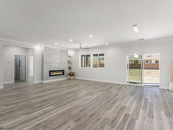 Your search is over! Brand new home with a gorgeous mountain view in Pahrump! This single family home has a great floorplan with 3 bedrooms, 3 full baths packed with tons of upgrades*recessed lighting true out*vinyl planks flooring*amazing kitchen with quartz countertops and backsplash*stainless steel appliances*white shaker cabinets*pot filler. Living room has a gorgeous built in electric fireplace with shelving to hold your memories! Spacious Resort style primary suit with a huge walking closet, private access to covered patio and bread taking bathroom, featuring upgraded shower finished in Italian percaline tiles*free standing tub*double vanity. Second bedroom suit with gorgeous custom private bathroom. Bring your toys to a spacious three car garage and RV parking with all hook ups. Entertain on your own covered patio and large backyard ready for your imagination to customize this desert oases! Oversized cul-de-sac lot les then one hour away from all the fun in Fabulous Las Vegas!