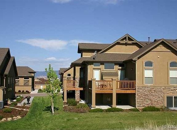 Luxurious, ranch style, "ROCKAWAY" in the carriages at Indigo Ranch. Enjoy the warmth & comfort of this spectacular stucco and stone beauty (previous model home). As soon as you see the decorative enhancements, keystone columns to this home you will know why it was crafted to model home perfection. The epitome of Colorado living and maintenance free lifestyle. Entering the home you are greeted with rich, warm, wood floors, soaring ceilings (with lots of natural light). . Living room has a walk-out to expansive deck and wide open views. The beauty of the hardwood floors is complimented by lots of natural light. The upgraded wet bar and cabinets come complete with recessed lighting and wine rack to store your favorite bubbly. Capture your own piece of paradise with the sweeping deck which is great for summer entertaining. Luxurious columns, crown molding, coupled with tall windows gives spacious open design. Just minutes from the ticking heart of Power's Corridor. Enjoy your New Home!