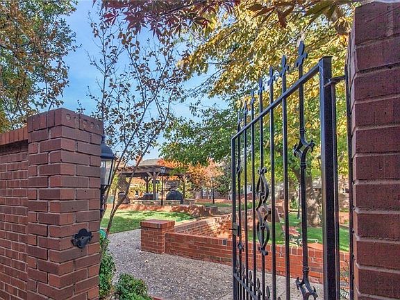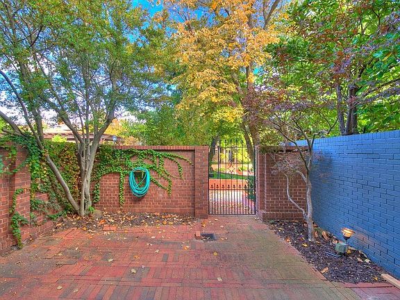 Totally updated condo in gated community in prime OKC location. Front courtyard area overlooks common area with trees, outdoor fireplace, heaters, pergola, and outdoor seating. Beautiful wood flooring and new paint throughout home. Huge open living room features bay window with plantation shutters, attractive fireplace with built-ins with cabinets/storage galore. Kitchen equipped with stainless steel appliances, granite counter tops and backsplash, and tons of storage. Large dining open to living space with updated light fixture. Upstairs offers two bedrooms with private baths. Guest bath and laundry on lower level. Upgrades include light fixtures, hardware, plumbing fixtures, and paint throughout. This quaint neighborhood is lined with brick streets, back alley parking and flickering old time gas lanterns.