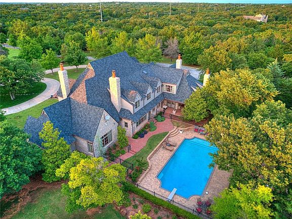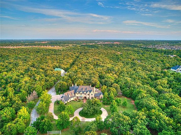 Stately Edmond Luxury Estate with double gated entries. Large front yard that is currently being used as a soccer field. A winding drive leads the way to this handsome Country English Estate. Classic appointments are found throughout this gracious home both inside and out. Hardwood floors enhance the carefully proportioned rooms, which are generous yet cozy. Lovely manicured landscaping provides the perfect setting for this private residence. Amenities include: private gated entry, outdoor living areas, completely remodeled kitchen, custom vent hood, quartz counters, Wolf appliances, double dishwashers, kitchen island, wood beams, butler's pantry, coffee bar, central vac, wine fridge, Sub Zero fridge, bonus room /theater area, mud room, exercise room, trails, workshop, multiple living areas, executive office suite with fireplace, storm shelter, RV hookup, etc. HVAC and hot water tanks replaced in the last 3 years. Service entrance with it's own gate and gravel road.