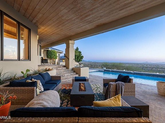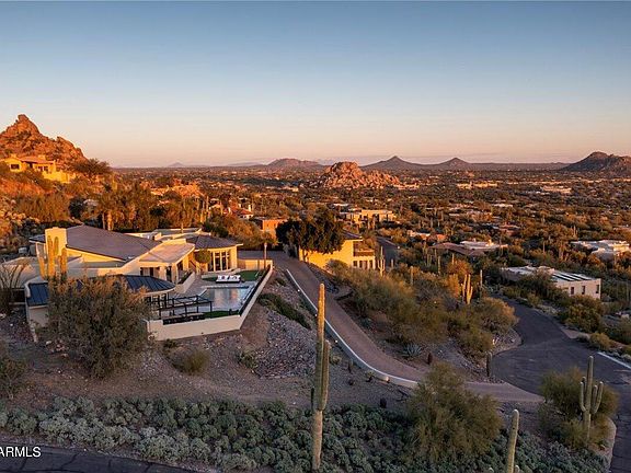 Breathtaking views from every room in this home including the guest house! This property is perfect for entertaining, families or a 2nd home getaway. An impressive water feature with living wall greets you as you enter the courtyard. Through the custom glass and iron pivot front door you step into the lounge featuring a nearly 1,000 bottle wine room. Beautiful tile in all the right areas and custom cabinets throughout. Main house offers 3 bedrooms, office and a media room with 4 full baths. 1,920 sq ft of total square footage is the guest house, which is fully equipped with a complete kitchen, laundry, one bed, one bath and great room setup. The views on the deck are breathtaking! The bottom level of the guest house has endless possibilities! It could be a gym, music studio, art room, office... whatever you desire. Information available to make it additional casita setup if needed.