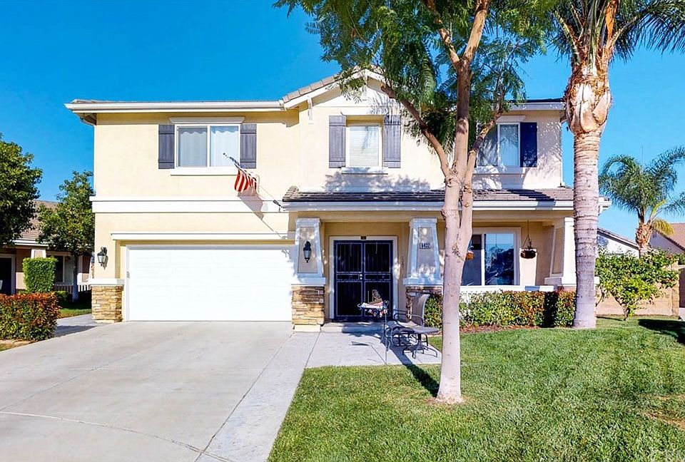 Immaculate cul-de-sac home in Eastvale features five bedrooms and 3.5 bathrooms with a spacious floor-plan that includes a gourmet-like kitchen, bedroom and full-bathroom downstairs, Master Suite with balcony, dual closets, dual sinks as well as a separate shower and jet tub, and laundry room with utility sink upstairs. Additional features include central vacuum system, rain gutters, dual A/C units, a BBQ island with refrigerator, and a low-maintenance rear yard great for get-togethers, great for kids to play-in, and great for pets to roam-in. See it today and move-in before the holidays! Its bonus features like the whole-house fan and solar power system await you!