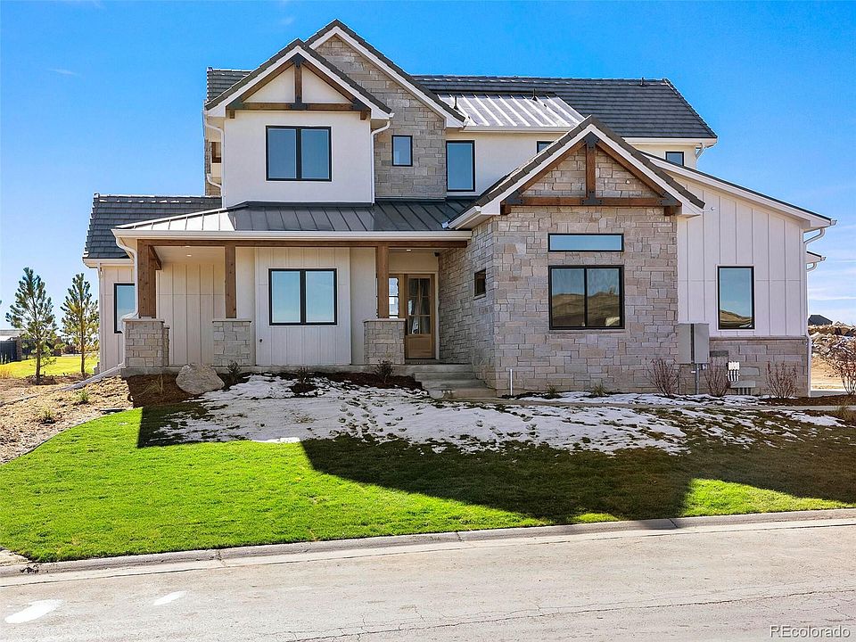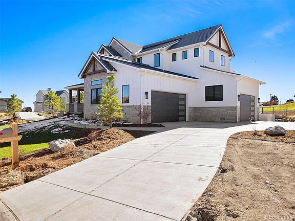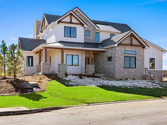 Introducing a brand new stunning house by Adamo Homes. 6432 Holy Cross is the corner home on a cul-du-sac located on the north side of The Village at Castle Pines. The 2-story home has fantastic south and west facing mountain views, especially from the sprawling, partially covered deck upstairs. Inside the home is larger than it looks from the outside with 6 bedrooms total - 4 up, a guest suite (or 2nd office) with en suite bath on the main level, and the 6th bedroom suite downstairs, PLUS a kids play area (or 7th bedroom with no closet). Design features include an open concept great room to kitchen with adjoining informal dining space, plus a formal dining room conveniently tucked away behind the kitchen, all with access to the main level patio. Completing the layout is a thoughtfully planned walk-out lower level with private patio, theater/bar area, and private fitness room. A combination of contemporary fixtures with warm wide-plank wood floors, plush carpet, cool tile, and well paired paint tones round out the design elements. 4 car garage with heated driveway! The convenient location is an absolute perk! This lot backs to the Summit Club pool and sports fields, plus there is a family playground adjacent to the cul-du-sac. It is a short drive or easy walk to The Country Club at Castle Pines - one of two exclusive golf and social clubs located with in the gates of The Village (membership required for both). Gate #5 provides easy access to both Castle Pines Parkway and Happy Canyon Road. The Village at Castle Pines is one of Colorado's largest gated communities featuring 24 hour EMT trained security staff. In addition to the member golf clubs, Village residents enjoy countless amenities including miles of walking trails, 2 community pools, multiple picnic and gathering areas, tennis courts, sports fields, playgrounds and an adult fitness center.