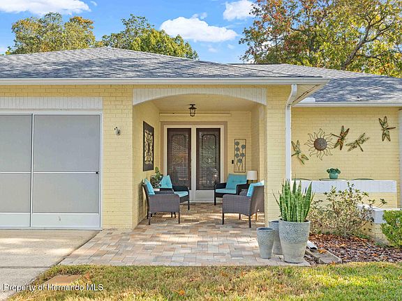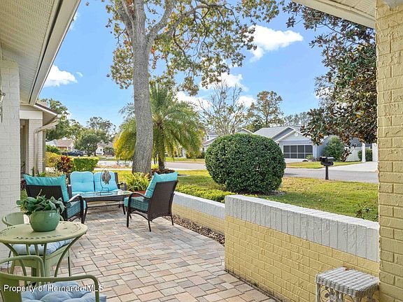 ENTERTAINERS DELIGHT!! New expansive Brick paver walkway and patio leads to Leaded Glass Double entry doors into Open Concept with bright rooms with skylight and recessed lighting, PLANTATIONS SHUTTERS. New Oak Luxury Vinyl Plank Flooring lends warm appeal throughout. Split floor plan. Guest Bedroom with Spacious Closet, ceiling fan and Front Windows. Guest Bath with tub/shower combo, comfort height commode features New Sink Vanity and Faucet with Granite counter. Large open DESIGNER Kitchen updates include New Stainless Appliances, Custom Stainless Range Hood and Backsplash, Soft Close Cabinets with Pull outs, Large Farmhouse Stainless Sink with Garden Window, Granite countertops with Bar Height seating, Double Pantry and Recessed Lighting. Bay Window with built in Seat extends off Kitchen as Breakfast Nook or fit for Formal Dining with additional seating area and sliding door access to Enclosed Lanai. Off Main Living area Sliding doors give way to Lanai with Ceiling Fan, Fully screen enclosed with Brick Paver patio continues to grand scale outdoor patio for Entertaining around your Fire Pit and Gas Grill. Backyard is Private and beautifully landscaped. Primary Suite with Ceiling fan, Recessed Lighting, Beautiful Windows with Garden views and space for seating has well organized shelving within walk-in closet. Updated Bath is Tiled with Raised shower floor, Built in Seat, Rain Shower Head and Custom Glass Doors, New Sink Vanity with Granite top, Tall Storage with Pull outs, Bidet Commode, New Faucet and Lighting fixtures give a spa-like feel. Be prepared for anything as this home has it's own GENERATOR, propane contract $75.00 per year. Newer Garage Door with Screen Panels features New Front Load Washer/Dryer, Pull down attic stairs, Wall cabinets with room for storage. Short distance to New Wellness Center this home awaits you Furnished and Turn Key Ready! EZGO Golf Cart available outside of sale. ROOF 2022 HVAC 2017, Annual Propane Contract & ADT Wired Security. Make this YOUR HOME & ENJOY THE GREAT LIFE TIMBER PINES has to offer, a gated 55+ Active Adult Community. Timber Pines boasts 4 PRISTINE Golf Courses, Award winning pickle ball center, New state of the art Fitness/Wellness Center, Club House and Restaurant, Performing Arts Center, Residents Activity Center, 2 Geothermal Pools, Tennis, Billiards, Bocce, Wood Shop, Arts and Crafts Center, PAWS PARK for your pets. SO MANY ACTIVITIES with Over 100 Clubs. Spectrum Cable TV, 2 Boxes, and highest speed internet included in HOA fee. New buyer pays $2640 Capital Contribution to TPCA at closing. CALL TODAY!!!