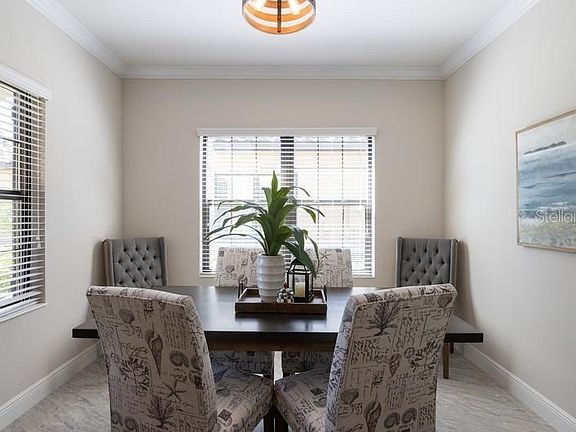 Gorgeous and highly upgraded 2 bedroom, 2 bath villa with formal dining room that features barn doors and could be used as an office or den. 2nd bedroom currently being used as den but a quick change of furniture and you are back to a proper guest suite in no time! Great room flowing into the kitchen is the focus of this ultra popular Crystal Sands floorplan, 20'' tile thoughout the living areas, 5 1/4" baseboard, crown molding throughout, white kitchen with 42" upper cabinets with crown molding and under cabinet lighting, center island finished with beadboard, white subway tile backsplash, great room features tray ceiling with crown, additional can lights, extended lanai, custom light fixtures/fans throughout. Awesome gated community features heated pool/spa, outfdoor kitchen and TV, NO CDD, low HOA fees cover roofs, paver driveways and all exterior yard maintenance. Amazing location, close to Sarasota, St Armand's, Lido & Longboat Keys, UTC Mall and tons of shopping/dining!
