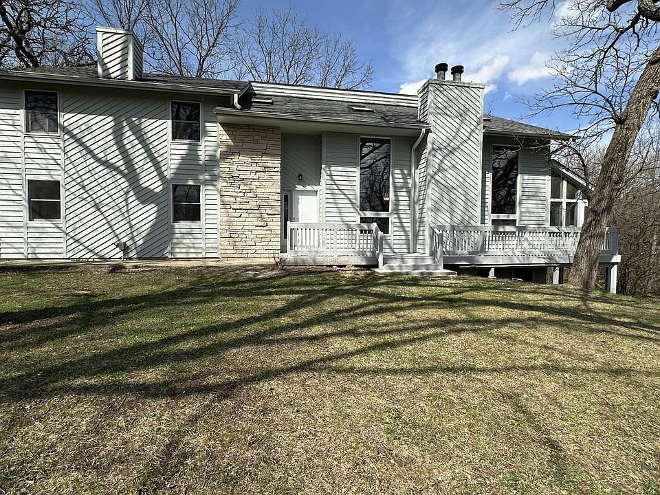 Great updated home 5 bedroom with 3.5 baths. Lower-level: Rec room, 2 bedrooms, full bath having a walkout basement and 2nd fireplace. Huge 30 x 22 two-story living room with fireplace, kitchen 30 x 17 with dining area. Large cathedral ceilings, master bedroom with walk-in closet and vaulted ceilings, wraparound deck and screened in porch, main floor den/office with a two-car attached garage. All on 2.48 wooded acres. Located in the Township of Lyons close to Lake Geneva and the Illinois boarder.