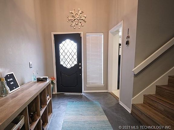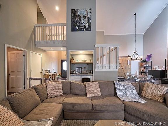 Wonderful 3 bedroom home in Jenks School District. Vaulted front room with a great fire place and wet bar. Master bedroom is located on main level. Master bathroom has double vanities & separate shower and tub. Kitchen has beautiful granite, stainless appliances and island. Breakfast nook and formal dining area. Two bedrooms and office located upstairs. This home is in a great location, close to so much in South Tulsa. With direct access to local trails and Tulsa's Hunter Park.