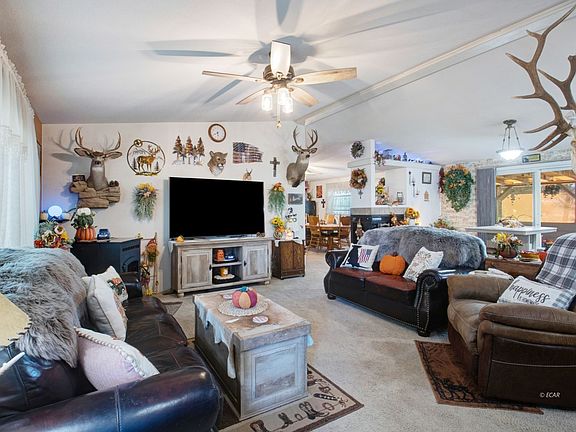 SELLER WILL CONTRIBUTE 5k IN BUYERS CLOSING COSTS!! Look no further than this adorable home with a yard that feels like you are in a park! You wont want to leave! Welcome to this 3 bed 2 bath home, situated on almost 10 acres, fully fenced with welded pipe fencing, a place to put your RV and have it stored and covered for the winter and a garage/ work shop, plus your own well. This home is set up and ready for you to enjoy with everything already already done for you, the back covered patio is perfect to enjoy in all seasons! The pellet stove and arctic insulation underneath the home keep it toasty - the sellers say they use VERY minimal propane! The large kitchen has knotty alder wood cabinets and PLENTY of them for storage! Brand new bradford hot water heater installed Nov 23! Come take a look today!