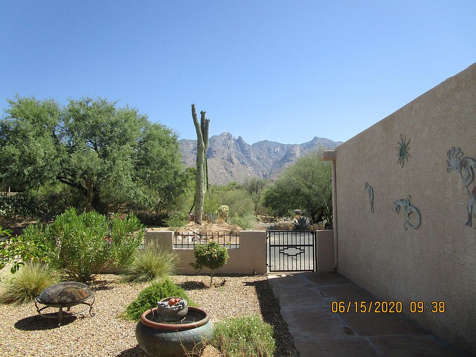 Located in the highly desirable Foothills Townhomes with 70 units on 70 acres surrounded by beautiful natural desert and mega view of Catalina Foothills with Finger Rock Mtn views from front patio!!!Covered front and rear patios. This 3 bedroom/2 bath TH has mexican tile in living areas & carpet in 2 bedrooms. Kitchen & baths have been remodeled. Newer cabinetswith granite & stainless appliances in kitchen. Two car garage. Water Softener owned.Solar is owned -electric bills est $50 or less includes solar water heater. 2 outside storage areas off front patio. Greatroom has wood burning beehive fireplace. Security screens. Multiple skylights. HOA incl water, sewer, trash, pool maintenance, Rural Metro. Nearby La Encantada mall shopping & restaurants Campbell/Skyline