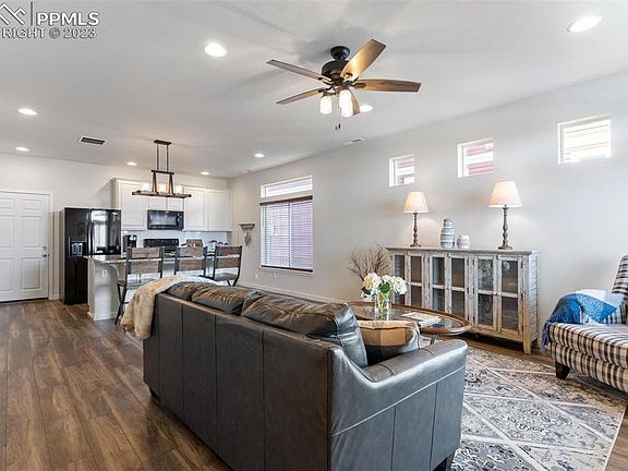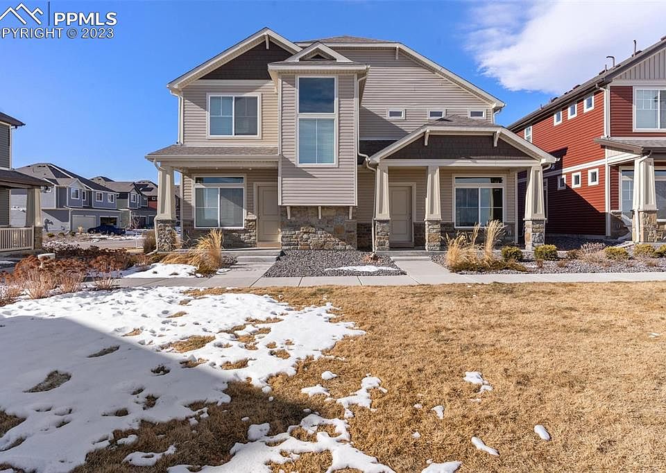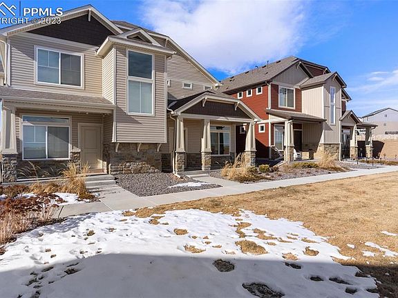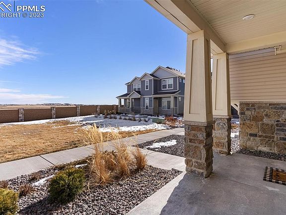 Welcome to this stunning 2 bedroom/3-bathroom home in excellent location in coveted Banning Lewis Ranch community. This home faces beautiful greenbelt space, and large covered patio to enjoy your morning coffee. Beautiful open-concept living room and kitchen with granite counters, upgraded tall kitchen cabinets with black matching appliances – refrigerator included. Powder room located on main level. Luxury vinyl plank flooring on main level. Upgraded kitchen and living room light fixtures. Charming nook area under staircase with half-open spindle stair rail. Second level has two bedrooms, the master suite with walk in closet and attached bathroom. Second bedroom has its own full bathroom. Laundry and large linen closet on second level. Two car garage included in this charming home, built in 2020, home is spotless. Central air conditioning. Banning Lewis Ranch offers, swimming pools, tennis and pickle ball courts, club house with fitness center. Beautiful parks, trails, and dog parks for our best friends. HOA maintains landscaping, so you and your family can enjoy all the amenities. Location is excellent, minutes to Powers, Woodmen, Hwy 24. Close to military bases.