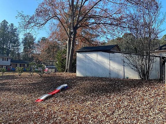 Riverdale near Fayetteville, the quiet, nice neighborhood with mixed cultures of all types. Corner house end of a cul-de-sac near a stream and small trail, great trees. Large front yard, side yard, and backyard with bonus storage barn and bonus playground all fenced in, with 4 parking spots in front and 4 parking spots in back, for a total of 8 parking spots. Walk inside kitchen all stainless steel, electrical stove and oven, dishwasher, small dining area but can use huge laundry room for bonus room, dining room, play room, or office with separate door and half bathroom. Back of kitchen, large living room, upstairs 2 bedrooms and bathroom. Lower level has no steps, you can actually pull right up to the back door, great for those who can't walk far. Back yard has grill, and big enough for events of all types. Large yard for all your fun and comfort.