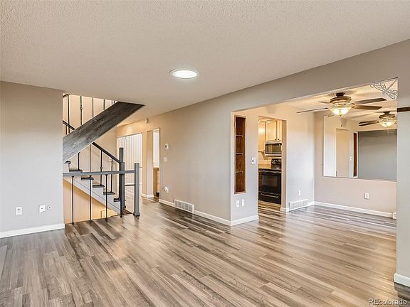 This beautifully remodeled 3 bedroom, 3 bathroom home in Woodcrest will take your breath away. Everything has been chosen with thought and care, from the mature landscaping to the fine details inside. As you enter the home you are drawn to the bright and open floor-plan. Entertain family and friends in your amazing kitchen featuring stainless steel appliances, dining area and cabinets offering storage solutions at every turn. The family room, right off the kitchen, is a great place to relax or watch the big game. The many windows throughout the home flood with natural light. Upstairs boasts 3 bedrooms including a lovely primary suite. Retreat to the basement with an additional flex space, ready for your personal touches and a laundry room. The basement also has brand new carpet! Units with this much room are rare! Step out to the nicely finished patio and fully fenced yard to enjoy the Colorado sunshine. This is a great place to host a barbecue, gathering, or enjoy your morning cup of coffee. Your dream home is located in a desirable neighborhood with a community pool. The area features beautiful parks, great schools and a wealth of nearby amenities. This is a perfect place to call home or build some equity fast!