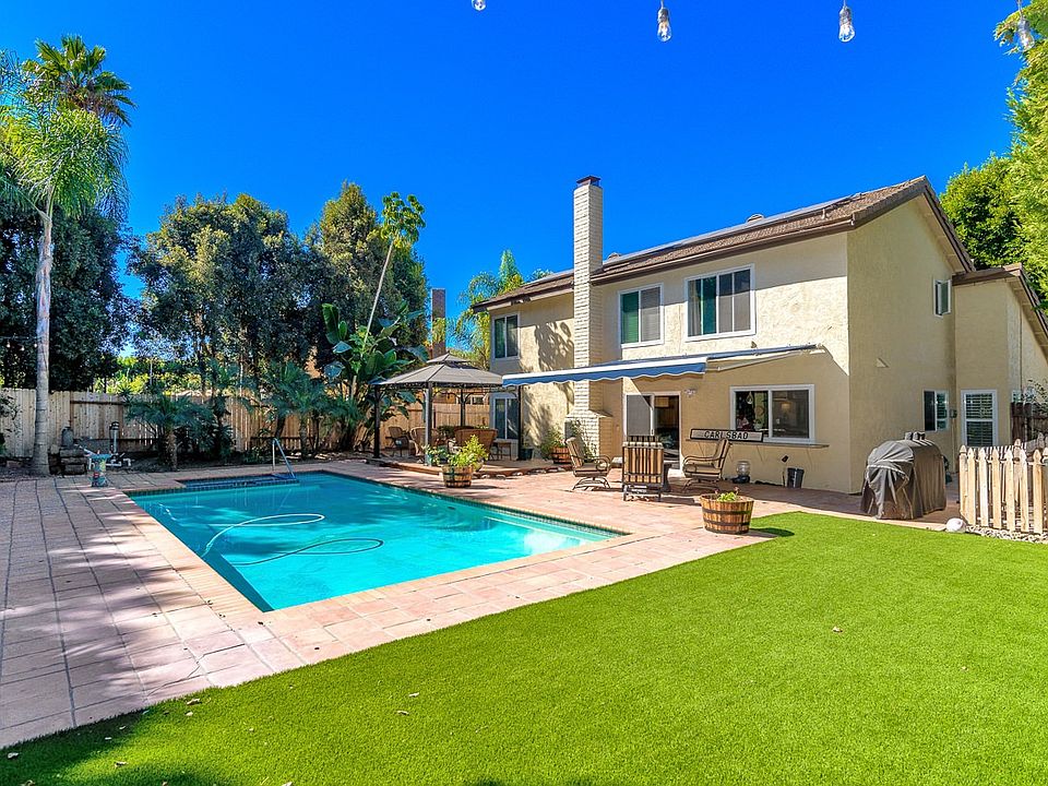 Amazing opportunity to live in desirable La Costa, this great home includes 4 bedrooms, 1 large bonus room, & 3 full bathrooms. As you enter into this 2 story home it has an open floor plan, 2 living spaces, kitchen, 1 bedroom & full bath downstairs. You'll feel right at home! Enter into backyard through the sliding doors off the kitchen, pool/spa combo is surrounded by beautiful mature landscape, covered deck & artificial turf next to the pool makes for easy maintenance.