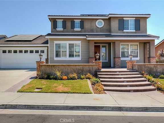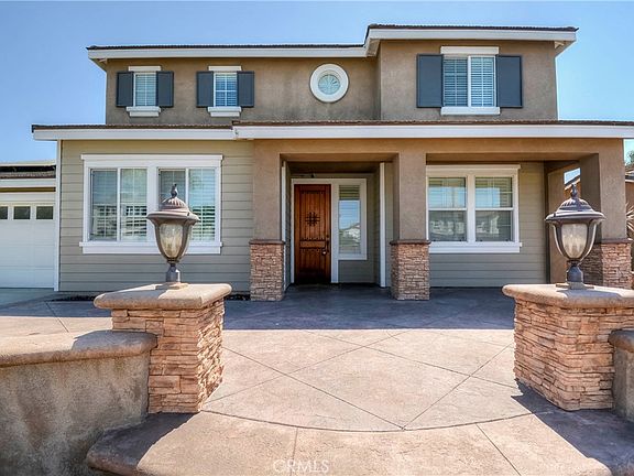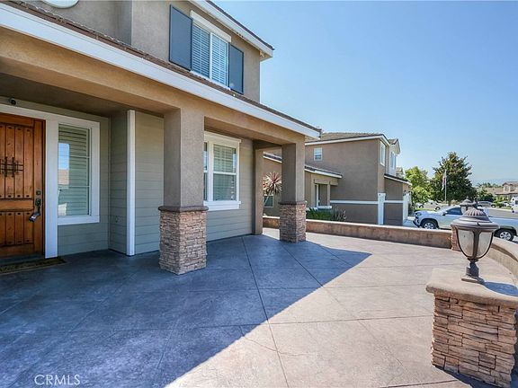 Come and see this beautiful spacious pool home in a nice quiet neighborhood. You will be greeted with gorgeous stone steps leading to a large comfortable porch to relax during the evenings. Once you enter the home you will experience an open space throughout the home with a formal living room adjoining formal dining room with plenty of light with recessed lights and large shuttered windows that give an elegant look. Across from the formal dining area you will find one bedroom and one full bath perfect for guest. Laundry room is downstairs with a large utility sink and plenty cabinet space. The kitchen has a large kitchen Island set on stone with breakfast bar seating, granite countertops, recessed lighting, and a large pantry. The large second living room features a stone fireplace; very spacious area to lounge and have gatherings and/or watch movies. Upstairs you will find four additional bedrooms; the large main suite has a grand large closet and large main bathroom with dual vanities, soaking tub, and separate shower. There is a sizable loft area perfect for a game room, gym or office. This home is an entertainer's dream home!! With a private sparkling swimming pool, spa, and an open patio with ceiling fans. This home has four car garaged attached and paid solar panels. Conveniently located near schools, parks, shopping, dining, and Fwy 15. This is the perfect home for those gatherings