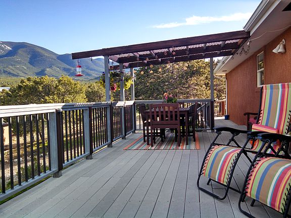 This home has it all! Very close to town, views, privacy, and a wonderful floorplan perfect for families or anyone who likes to entertain. Beautiful treed lot located in a peaceful mountain community less than one mile from Highway 50 and Salida High School, less than two miles to downtown and the Arkansas River. Approximately 3,000 finished square feet, with four bedrooms, three baths, open concept living area and separate family room. Spacious main floor master suite includes walk-in closet and master bath with walk-in shower and dual sinks. Second bedroom and full bath on the main floor. Two more bedrooms and a full bath in the large walkout basement provide privacy for older children or guests. Ample storage with large closets, large laundry/pantry/storage room, approximately 600 square feet of unfinished basement space (a portion currently used as a video room/man cave), and detached garage/workshop. Full home remodel in 2001 included many custom details and high quality finishes, giving the home tasteful contemporary mountain character. Recent upgrades include all appliances, lighting, and interior paint. Plenty of natural light with mountain views from nearly every window. Huge deck faces southeast for amazing views, warm days in winter and cool evenings in the summer. Concrete patio below the deck for relaxing in the shade. You will want to make this special property your perfect Salida home. Many furnishings negotiable. 3% commission offered to buyer agents.