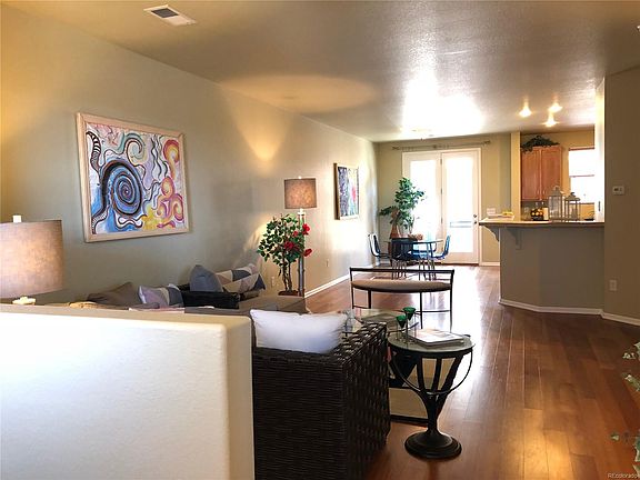 Beautifully updated, tastefully decorated, freshly painted with new carpet and cherry floors in a convenient location in Cherry Creek Schools district, this town home will attract the pickiest buyer. Everything is ready to move in, new stainless steel stove, open storage in a basement/garage area, upstairs laundry room, Juliette balcony out of Master and balcony of living room, and two car garage. This newer spacious three bedroom home is a least expansive option surrounded by development of new patio homes, near Cherry Creek State park, Centennial Park, shopping, RTD. It is perfect to rent or to call home.