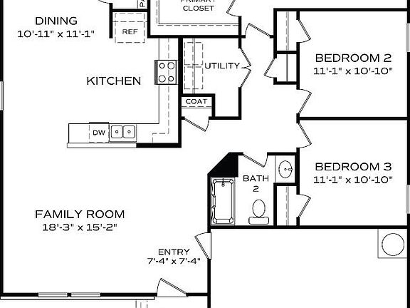 Welcome home to the Maryland Plan! This home features 3 bedroom, 2 bathrooms, more than 1,500 sqft and a 2-car garage. Whether you enjoy entering your home through the front door or the garage door, you will enter into an large family room that features an open concept kitchen view with an overhang bar top, perfect for entertaining. Speaking of space, this kitchen features a breakfast area and a sizeable pantry. Throughout the remainder of the home, you will notice 2 full bathrooms, an indoor laundry room, and a true walk-in closet in the primary bedroom. Schedule a time to view our Maryland plan and get excited about homeownership!