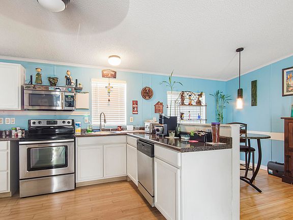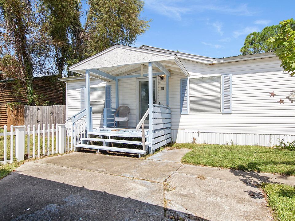 CURRENTLY UNDER CONTRACT, SELLER WILL CONSIDER BACKUP OFFERS. Welcome to your dream coastal retreat! This contemporary manufactured home, nestled on the east end of Panama City Beach off Thomas Drive, offers a perfect blend of modern living and beachside convenience. With its prime location, you'll be just moments away from the sun-kissed shores, shopping, dining, St. Andrews State Park, the Navy Base, and even within walking distance to the highly regarded Patronis Elementary School! Relax and unwind on the generous covered back deck, which provides a fantastic space for outdoor dining, morning coffee, or simply enjoying the lush backyard. The sizable yard is a rare find for mobile home properties and offers endless possibilities for gardening, outdoor activities, and more. This home features a practical split floor plan, ensuring that the master suite becomes your private oasis. Pamper yourself in the spacious master bathroom, complete with a garden tub and walk-in shower. Parking and storage are a breeze with an attached garage featuring a rear garage door, perfect for your riding lawn mower, and an additional covered carport for extra parking or storing your beach gear. Enjoy peace of mind with recent upgrades such as a newer metal roof, a brand-new double septic tank system, and a freshly installed water heater. The doors, flooring, bathrooms, and kitchen have all been thoughtfully updated to enhance your quality of life. Measurements approximate, please verify.