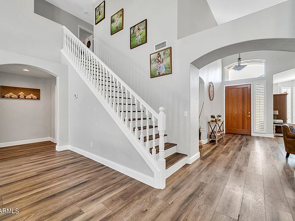 Welcome to your dream home with FULLY OWNED SOLAR nestled inside the Chaminade gated community! This stunning residence boasts the perfect blend of elegance & modern convenience, w/ a plethora of desirable features to elevate your lifestyle. Step inside to discover a freshly painted interior that exudes a sense of sophistication & charm throughout. The main level greets you w/ a luxurious primary bedroom suite, complete w/ a spacious walk-in closet & a lavish en-suite bathroom for ultimate comfort & privacy. Upstairs, three generously sized bedrooms await, along w/ a versatile loft area that offers endless possibilities for relaxation or entertainment. Prepare to be dazzled by the remodeled kitchen, where gourmet cooking meets contemporary design. Equipped w/ top-of-the-line appliances, sleek countertops & ample storage space, this culinary haven is sure to inspire your inner chef. Entertain guests in style w/ separate formal living & dining rooms, perfect for hosting memorable gatherings & special occasions. For more casual affairs, the cozy family room provides the ideal spot to unwind & enjoy quality time w/ loved ones. Step outside to your own private oasis, complete w/ a sparkling pool where you can soak up the Arizona sunshine & cool off on hot summer days. The lush grass backyard offers plenty of space for outdoor recreation & relaxation, creating the perfect backdrop for creating lasting memories w/ family & friends. With fully owned solar panels, you'll enjoy energy savings & eco-friendly living year-round. Plus, the convenience of a three-car garage ensures ample parking & storage space for all your needs.