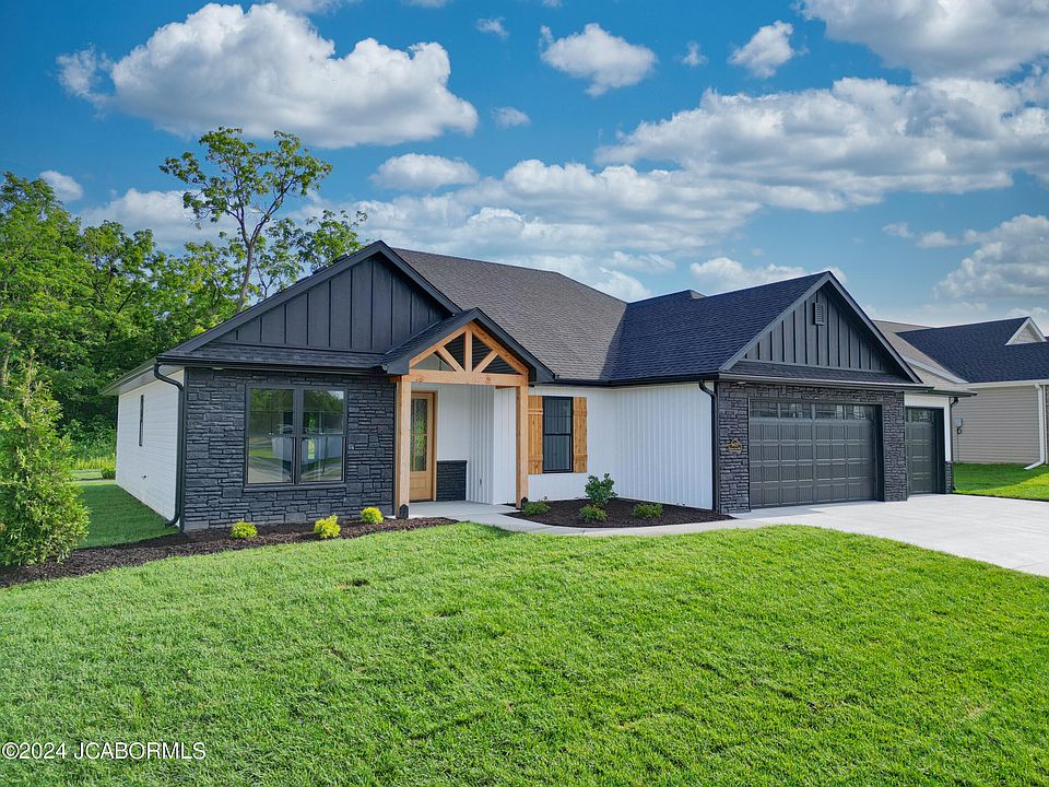Welcome to this stunning new construction home by Livingston Construction in Ashland, Missouri! This 3 bedroom, 2 bathroom home features an oversized 3-car garage. From the moment you step inside, the crown molding and abundant natural light through Anderson Composite Series windows set an elegant tone. Meal preparation is a delight in the extra-large kitchen, complete with undercabinet lighting and ample quartz countertops. With 10-foot ceilings, the main living areas feel spacious and inviting.