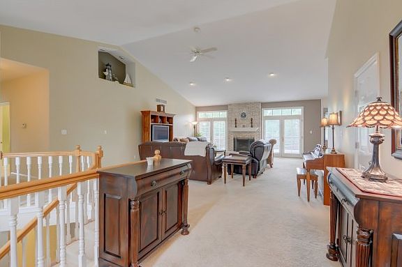 - FeaturesInterior: Ceramic Tile Floor, Pantry, Sump Pump, Carpeted Floors, Smoke Detector, Ceiling Fan, Garage Opener, Insul Glass Window, Drywall, Fireplace-Livingroom, Walk-in Closet, Cable TV, Cathedral Ceiling, Fireplace Wood, Wet Bar, Workshop Area, Breakfast Nook