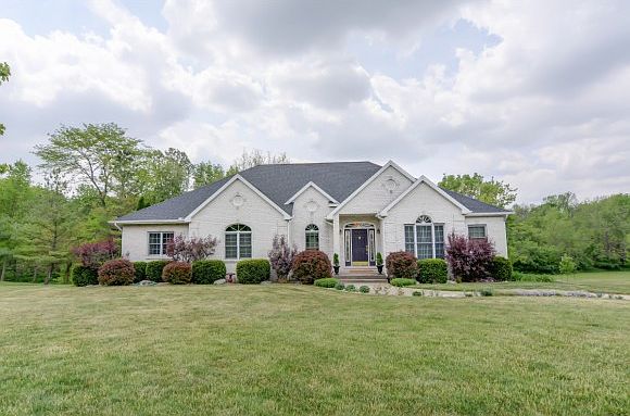 Beautiful raised ranch on Gorgeous 2 acres. Offering 4 bedrooms, 3 baths and a finished walk out with even an option for an additional bedroom. This is exactly what you have been waiting on. Located on a private drive in Mt. Zion district w/ a small creek and woods outlining the back property line. This home offers a large open kitchen, cathedral ceilings, accent lighting, stainless appliances, huge center island and opens to the great room. Private balcony off master suite is the perfect place to escape for quiet & take in the gorgeous nature views. Two staircases lead from main level to a HUGE basement. Lower level offers even more living space complete with 2 bedrooms, Full bath and walk out to the perfect patio and brick built in fireplace to entertain guests. NEW roof, NEW HVAC & completely turn key ready for the family looking to relocate to this peaceful retreat!