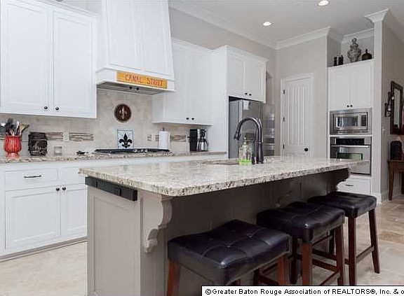 Another beautiful Bardwell home less than 3 years old and in better than new condition window treatments and refrigerator remain! The premier lot gives you a nice sized backyard. The home has gorgeous French patterned travertine flooring and custom archways throughout. The brick archway separates the living room from the foyer and is a beautiful accent wall. You'll also love the 10', 11', and 12' ceilings and crown molding throughout the house. The open floor plan makes entertaining a breeze! The living room with fireplace and recessed lights overlooks the deep back porch and back yard. The kitchen has a large island with slab granite counters, breakfast bar, and tile backsplash with decorative accents, wood hood vent, stainless appliances, a 5 burner gas cooktop, as well as a pantry. 2 bedrooms share a bath on the front of the house while the 4th bedroom and 3rd bath are off the kitchen area. All the baths have slab granite counters, framed mirrors and linen cabinets. The separate master bedroom has a special master bath with a custom tiled shower, deep soaking tub, his and her vanities with slab granite counters, plus a makeup counter for her and large walk-in closet with built-ins. The home is loaded with amenities such as a 'mud room' with storage cubbies off the garage. The deep back porch has a gas connection for your outdoor kitchen!!