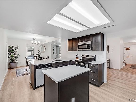 Welcome to the totally remodeled 6435 S Dayton St #103. This spacious condo has been updated with quality finishes from top to bottom. The kitchen features all new soft-close cabinets and quartz countertops. The main floor also includes a 1/2 bathroom, living room, dining room, flex space, and even closeted side-by-side laundry. Floors on the main level are quality LVP and the second floor offers new carpet and padding. The second floor features three bedrooms and two remodeled bathrooms. The primary suite is highlighted by spacious built-in cabinets that lead to the fully remodeled bath and almost-hidden spacious storage closet. Popcorn ceilings have been removed and both the furnace and air conditioner are almost brand new. For parking, you'll enjoy the private heated basement garage and outside shared community parking spaces. You won't find another condo like this in the community - the upgrades are modern and top-notch. See it today!