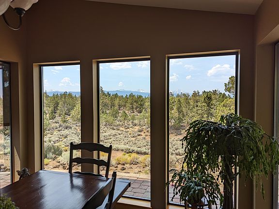 Hidden away in quiet Lovestone Acres is a custom gem that sits high on a hill with unobstructed views of 7 peaks and not a house in sight! Beautiful big windows let the mountains and outside living areas in. Thoughtful detail throughout the home with tile floors, granite counters& stainless-steel appliances Remote controlled solar shades on most of the windows. The main floor with living room, dining area, and kitchen all take in the incredible views and outside living area. Down the hallway is the primary bedroom and bath with jacuzzi tub and walk-in shower. 2 other bedrooms, a guest bath, and laundry complete that floor. Upstairs is another large bedroom, guest bath and bonus room with deck. Then there is the 34x36 insulated shop with 2 10ft doors and a 14 ft. door. Complete RV hookups complete this lower area. Tuck away within minutes to Bend, Redmond, and Sisters. This is a unique magical one of kind property. Welcome Home! Seller will consider carrying the contract.