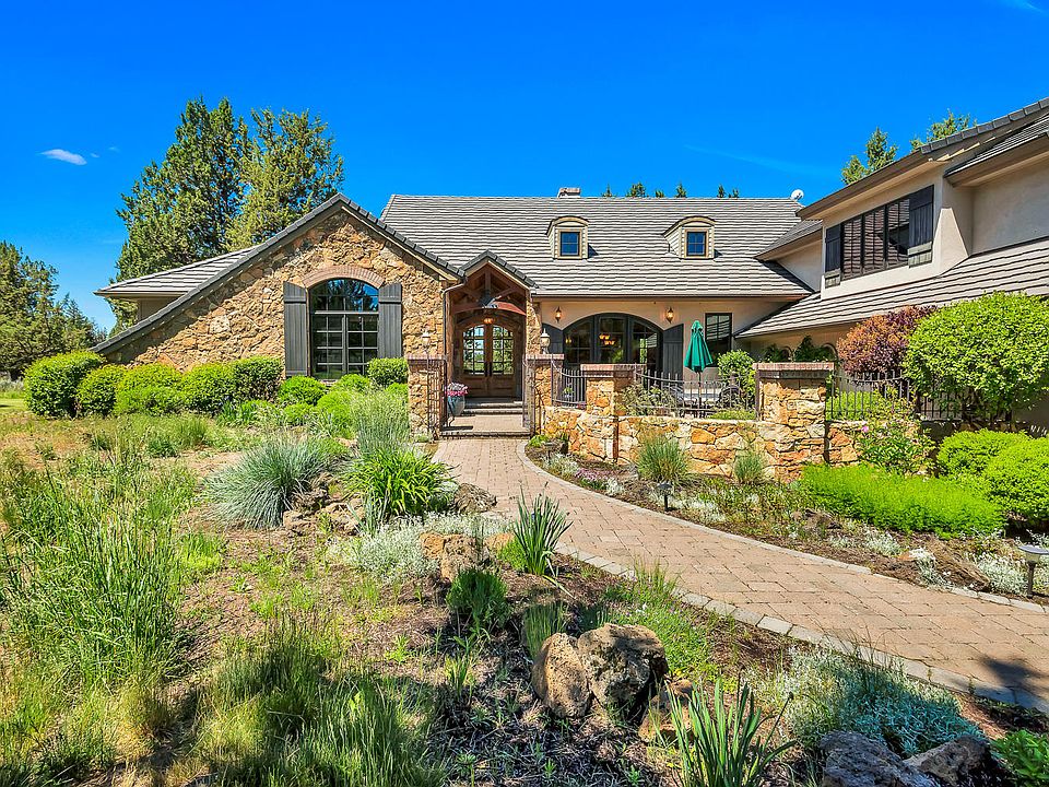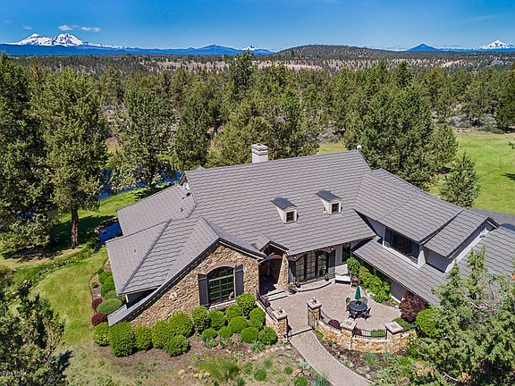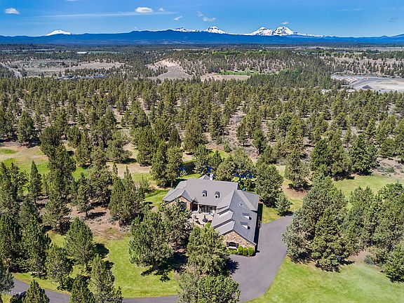 Stunning custom home with Cascade Mountain views on 9.8 acres. Enjoy the tranquility and peacefulness of this beautiful property offering both privacy and convenience. An elegant gated courtyard greets you as you enter this Steve Van Sant designed Pacwest built home with exceptional quality throughout. Single-level living with the exception of a large bonus room on the 2nd floor. 3 Bedrooms / 3 Full Baths + office/den + bonus. Vaulted Great Room with stone fireplace and mountain views overlooking your own private pond. Enjoy the beautiful sunsets from the large covered outdoor patio sitting next to a gentle stream. A private driveway flows into this quiet oasis with 3 acres of irrigation and backing to Tumalo State Park. Oversized 3-car garage with indoor-outdoor dog kennels and extra storage.
