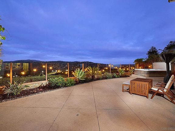 VIEWS! VIEWS! VIEWS! Boasting a PREMIUM LOT with no rear neighbors sits this exceptional property in the highly desirable community of Solterra in La Costa Greens! This one-of-a-kind, HIGHLY UPGRADED home offers breathtaking, unobstructed views, with Palomar & Black Mountain as your backdrop. Enjoy stunning vistas from all main living areas and master suites, thanks to a wall of windows that seamlessly blend indoor and outdoor living. The chef's kitchen features Caesarstone countertops, a full backsplash, an island with breakfast bar, upgraded kitchen cabinets, new under cabinet range hood, upgraded faucets & sink, a walk-in pantry, and top-of-the-line stainless steel appliances. The second-floor master suite offers a private balcony with premium views, a luxurious bath with dual vanities, a soaking tub, separate shower, and a newly upgraded closet with custom shelving and tile flooring. Two additional guest bedrooms are on the second floor, as well as a convenient laundry room. The third floor boasts a large loft space with full bathroom, perfect for a media room, office, or additional bedroom/guest space. Easy access to the back patio creates the ideal Southern California lifestyle, featuring low-maintenance landscaping, a hot tub, and more beautiful views of the hills. Recent upgrades include a new concrete walkway, Ring doorbell, new water fountain & Sunbrella awning at main entry, new rain gutters and downspouts, a full exterior repaint, and an OWNED SOLAR panel system. See supp.
