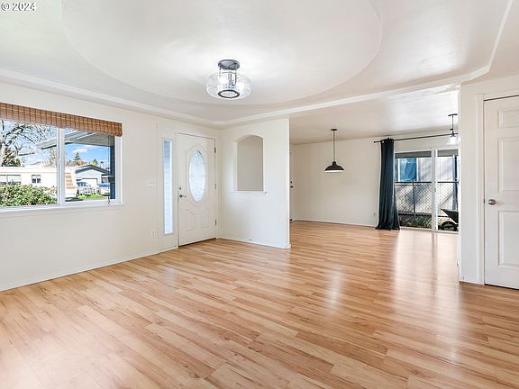 This tidy turn-key home is ready for your enjoyment! The seamless flow of the living room, dining room, and kitchen provides a perfect space for dinner parties, lounging, and cooking. Updated kitchen appliances include an electric stove, hood, built-in dishwasher, and stainless fridge, with a convenient slider off the kitchen leading to a side patio (perfect for grilling!). Each of the three bedrooms offers ample closet space and cozy carpeting- the primary is large enough for a king sized bed, with extra space for dresser, nightstands, etc. A back slider opens into a sizable, fenced backyard with another patio (new in 2021) and garden beds. Freshly painted interior, with laminate floors in the living/dining/kitchen. Other features include a brand new water heater, an included washer and dryer set located off the tiled bathroom, and an attached garage perfect for projects. Just one block away from Glenwood Park, with proximity to freeways, downtown Lents, Woodstock; farmers market and restaurants. The ease of this home makes an excellent investment opportunity for rental income or an ideal choice for a first-time buyer seeking both affordability and convenience. [Home Energy Score = 8. HES Report at https://rpt.greenbuildingregistry.com/hes/OR10017653]