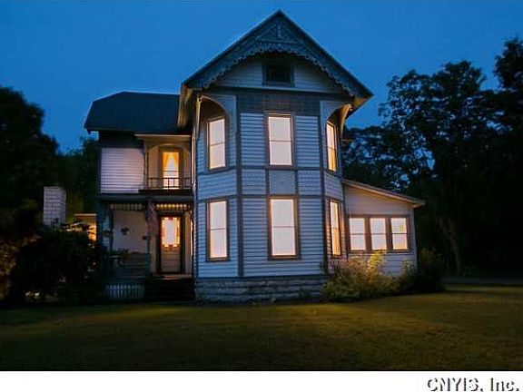 Take a step back in time. This well maintained house was built in 1875 by a famous author, and is called "Bonnie View". A fully-restored Queen Anne Victorian with vegetable and flower gardens and a wood lot.3 bedrooms upstairs as well as a sitting room with fireplace and a stunning library that could be used as a bedroom for a large family or lots of guests. Formal dining room, eat-in kitchen and a sunny breakfast nook. Original floors and woodwork, with space for an office, workout room, and lots of storage. A detached multi-car garage and the original carriage house.