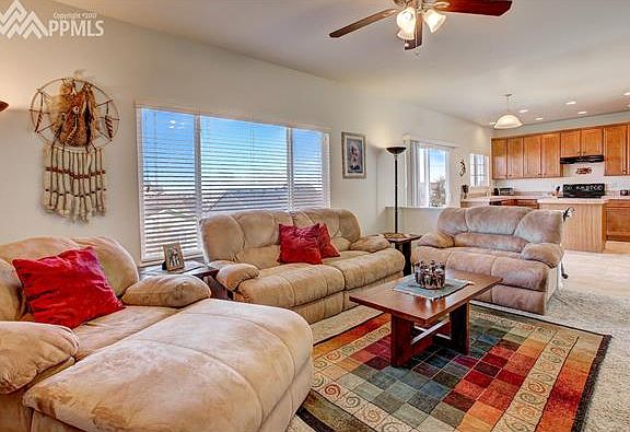 Room To Roam...Over 3000 Square Ft With Walk Out Basement~NEW Exterior Paint, NEWER Roof, NEWER Furnace, NEW Water Heater~Allowance For Interior Paint And Carpet~Enjoy Sunsets On Your Front Porch~Step Into The Grand Entry And Living Room With Soaring 17 Foot Ceilings~Entertaining Will Be A Enjoyable With The Open Concept Kitchen, Dining and Family Room~Your Next Holiday Get Together Will Be Easy As You Prepare Your Favorite Dinner In The Spacious Kitchen That Provides Plenty Of Storage With 42??? Upper Cabinets And Pantry, Plus An Island To Make Food Prep A Breeze~Dining Area With Sliding Doors Out To Your NEW Deck Where You Can Sit And Enjoy The Colorado Weather Or BBQ Your Favorite Meal~Cozy Family Room With Gas Fireplace Features A Tile Surround And Wood Mantle Perfect For The Holiday Stockings~Convenient Main Level Bedroom With Built In Shelves Could Be A Great Office Or Guest Room With An Attached 3/4 Bath~On The Upper Level You Will Find A Spacious Loft, Conveniently Located Laundry Room, 2 Spacious Bedrooms And A Full Bath~Also On The Upper Level Is Your Master Bedroom With Not One, But Two Walk In Closets, Attached 5 Piece Master Bathroom~Head Down To The Walk Out Basement And Find A Huge Rec Room With A Gas Fireplace, A Kitchenette And It???s Wired For Surround Sound~French Doors Walk Out To The New Concrete Patio~Basement Bedroom With Walk In Closet And A ?? Bath With An Amazing Tiled Walk In Shower Complete The Lower Level~Central Air And A 2 Car Garage Round Out This Fantastic Home~NEW Deck Currently Being Installed, Estimated Completion is Nov 21~Easy Access To Powers And I-25~Close To Shopping And Entertainment~Short Commute To Military Bases~This Is The One You Have Been Looking For