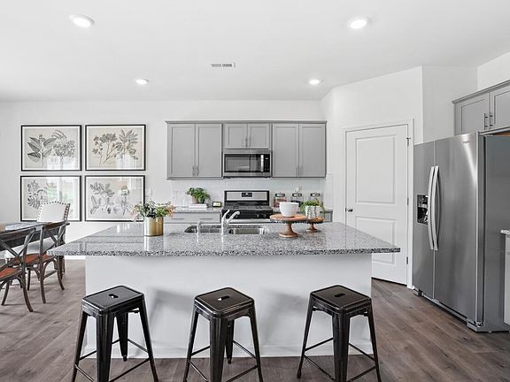 The Hayden is a two-story plan with 5 bedrooms and 3 bathrooms. The main level features a flex room adjacent to the foyer, ideal for a formal dining room or home office. The kitchen offers an island for extra seating, a large pantry, and it opens to the dining area and spacious family room. Downstairs you will also find a bedroom with a full bath. The primary suite on the second level offers a large walk-in shower, private water closet, double vanities, and his/her closets. There are 3 additional bedrooms, a full bathroom, a walk-in laundry room, and a loft-style living room on the second level. Smart home package included!