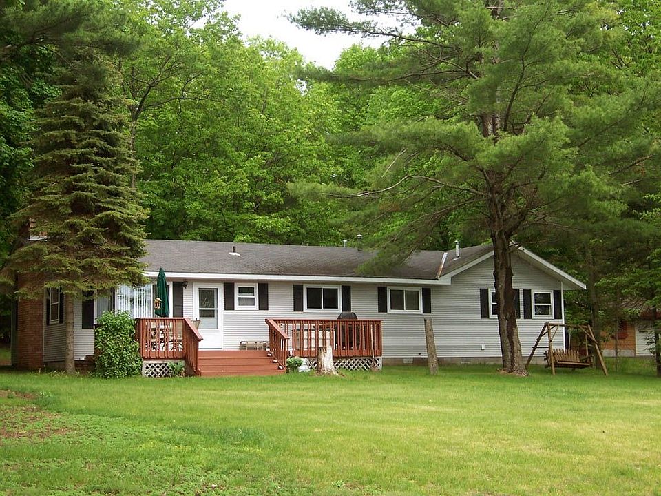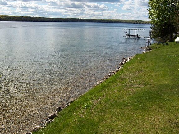 This well maintained year-round lakefront home with 115 feet of Hubbard Lake frontage that is 369 feet deep and wooded provides privacy from the dead end road. You won’t suffer from heavy weekend (drive by) traffic here. The Northeast Shore is known for some of the best shoreline for swimming and boating on Hubbard Lake. This property slopes gradually to the water’s edge for easy access. The house and landscaping show a history of homeowners who insist on cleanliness and convenience. You’ll have a hard time finding something this well taken care of. Many updates and lots of closet space make this home easy to enjoy. There is a bonus area in the attached garage for extra sleeping or storage space that makes the garage a total of 40’ deep. There are 4 bedrooms but one of them does not have a closet. Both the full and 3/4 baths are tiled. There is a brick fireplace to be enjoyed from the living room, dining and kitchen. There are lots of windows to enjoy a truly beautiful view of the lake and loads of daylight. The large lakefront deck is a great place to enjoy meals, morning coffee or friends.