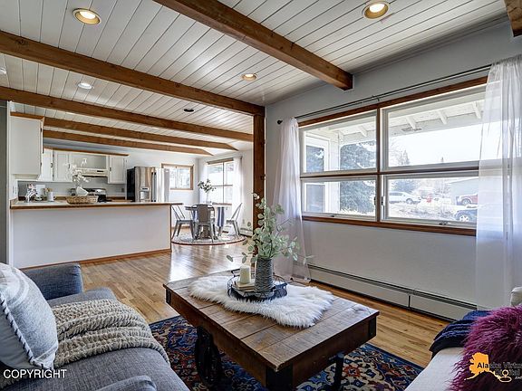 Owner just had antique hard wood floors refinished and wow! This is a ranch home on a super 10,125s.f. city lot within short walking distance of Cheeney lake and the trail system. Nice large kitchen just full of windows. Big bonus is you have a small living room or it could be a big formal dinning room plus a large family room with a cozy wood stove.There is a big covered storage are plus a really nice shed with electric. Was a dry guest cabin at one time. Yard is so big, it supports a vegetable garden area, raspberry patch and even a fire pit. This lot gets plenty of sun and would be the gardeners dream.