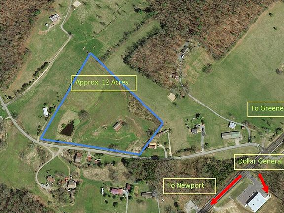 12+- acre farm tract located within a mile of the Newport Highway. Several possible build sites with views of the mountains, rolling green pastures, woodlands, and overlooking the pond. The property currently has a 40' x 60' farm storage shed situated on top of the hill, and has roughly a quarter acre pond situated in the center of the land. The tract has water, electricity, phone, and cable available at the road.