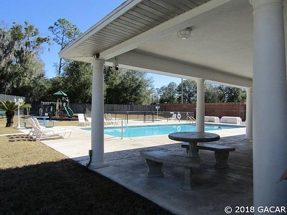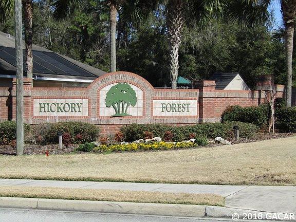 Welcome to Hickory Forest! Premier location off Archer Road near VA, Shands and Haile Village Center. Neighborhood amenities include sidewalks, pool, clubhouse and playground. This home has open floor plan, eat-in kitchen and formal dining room. Chair rails and wainscoting compliment the designer colors. Master Suite includes spacious bedroom with trey ceiling, two walk-in closets and spacious master bath. Guest bedrooms have finished touches such as crown-molding and accent trim. Vaulted ceilings in great room with plant ledges add to the decorator touches. French Doors lead to the open lanai and privacy-fenced back yard. Relax in the evening around fire pit and enjoy the starry nights. Short walk by side walk to clubhouse and pool. Enjoy Hickory Forest and a true sense of neighborhood. Sellers prefer "As Is" contract.