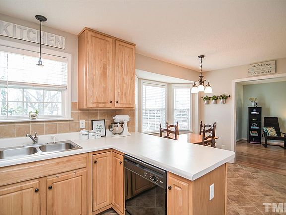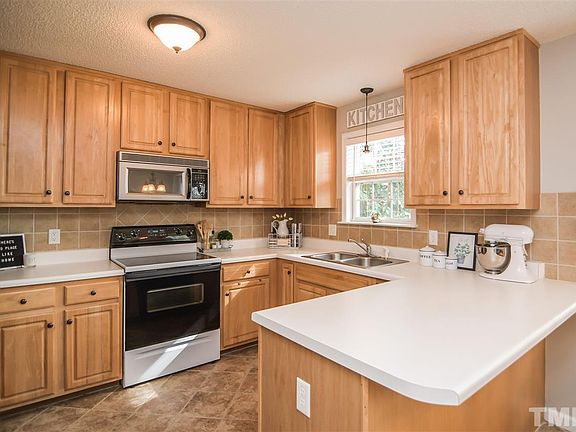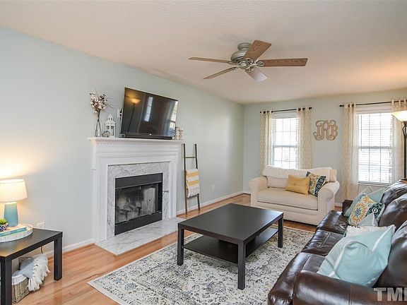 Meticulously kept home in Wake county on a cul-de-sac lot w/ no city taxes! Enjoy the front porch & evenings on the back deck overlooking a great backyard. Hardwoods in foyer, dining room & family room. Large family room w/ fire place. Separate dining room. Spacious Kitchen w/ tile floors, backslash, pantry & breakfast nook. Master suite boasts dual vanities & great walk in closet. Large 2 car garage. Washer & Dryer convey. Home Warranty. 100% financing available. Welcome Home!