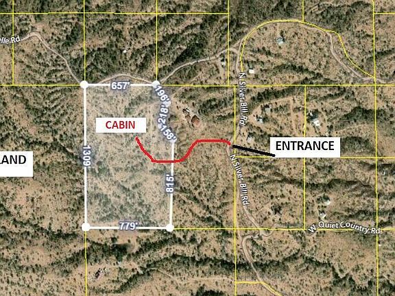VERY Unique Studio with separate living room. Large addition to the old building creating 488 sq ft living space, plus 112 Sq ft basement/cellar. Small 75 Sq front porch on the south side with fabulous mountain views! New aluminum roof; plus awnings; (2) 20 ft containers painted inside and out - perfect for a tack room or work shop & storage. County approved 2BR septic, power, electric and 2400 gallon backup Water tank from a shared well with ONLY the neighbor above. Seller added 400 ft water line. Building site was dozed with a D6 and new access road that has recorded easement off Silver Bill Road. Plenty of flat area for additional buildings. The cabin is totally fenced with 5 gates and a gated and fenced garden with chairs and tables .The cabin is turn-key. GREAT potential for AirBnB.