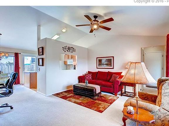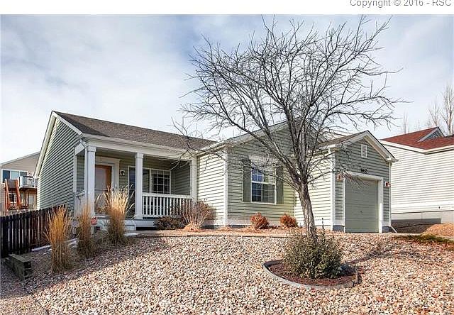 Well cared for ranch home with tons of charm! Welcoming covered front porch ideal for enjoying a morning coffee or the beautiful Colorado evenings. Open floor plan & vaulted ceilings, A/C, kitchen w/ island, pantry and walk-out to a fully fenced backyard! Spacious master features vaulted ceiling, private master bath & walk-in closet. Finished garage & low maintenance professionally xeriscaped front yard. Conveniently located near the Powers Corridor for easy commute and shopping access. A perfect place to call home!