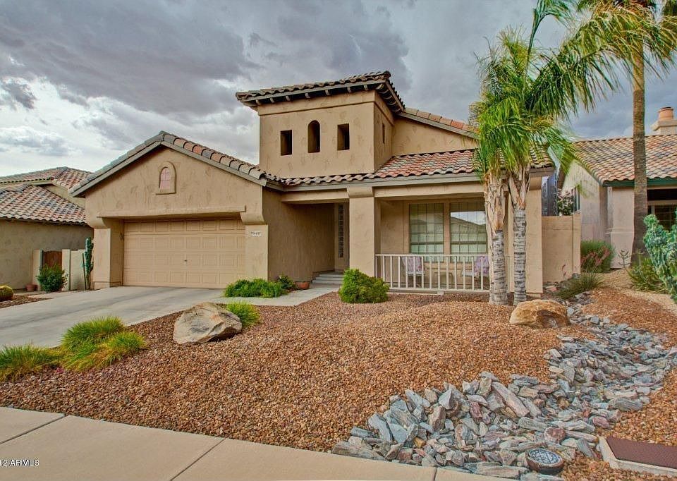 AMAZING Red Mountain views-golf course lot. Absolutely gorgeous home. Walk in to a spacious foyer with tile flooring and soaring archways. Large living/dining room combination with wood flooring. Gorgeous built in bookshelves in living room. Huge great room with with fireplace opening to kitchen. Kitchen is a cook's dream with granite counter tops and a large island with breakfast bar with exterior access to covered patio. Luxurious master suite with beautiful golf course and mountain views. Master bath boasts dual vanities and separate tub and shower as well as oversized walk in closet. Backyard finished with xeriscape/low maintenance, side yard finished with sitting area. Two car garage with side entry. Move in condition. Close to Rt. 202, 20 minutes from Scottsdale/Sky Harbor Airport